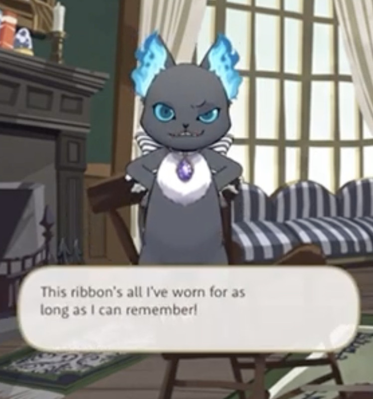Grim says, “This ribbon’s all I’ve worn for as long as I can remember!”