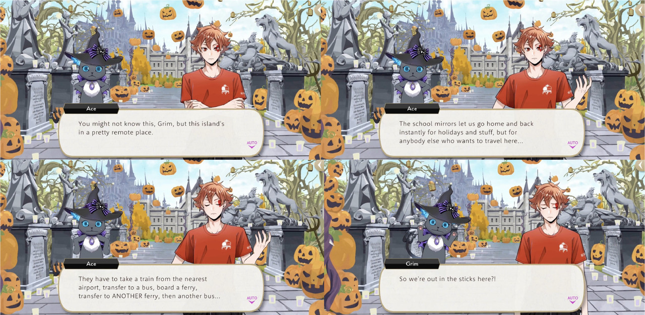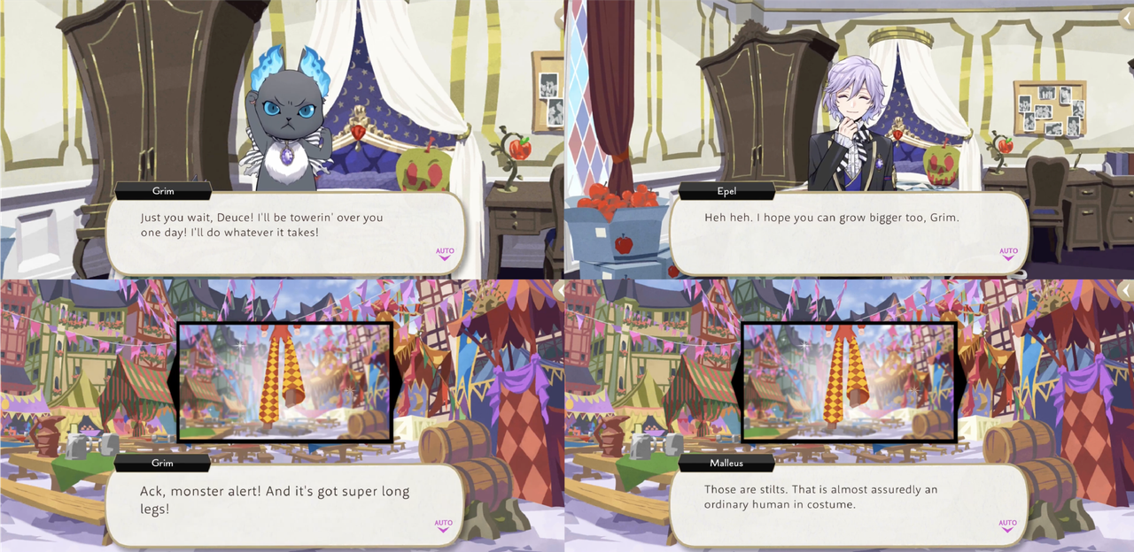 Deuce says that Grim can’t expect to grow the same way they do as he is not human and Grim insists, “I’m sure I’ve got more growin’ to do! Just you wait, Deuce! I’ll be towering over you one day! I’ll do whatever it takes!” Epel responds, “I hope you can grow bigger too, Grim.”