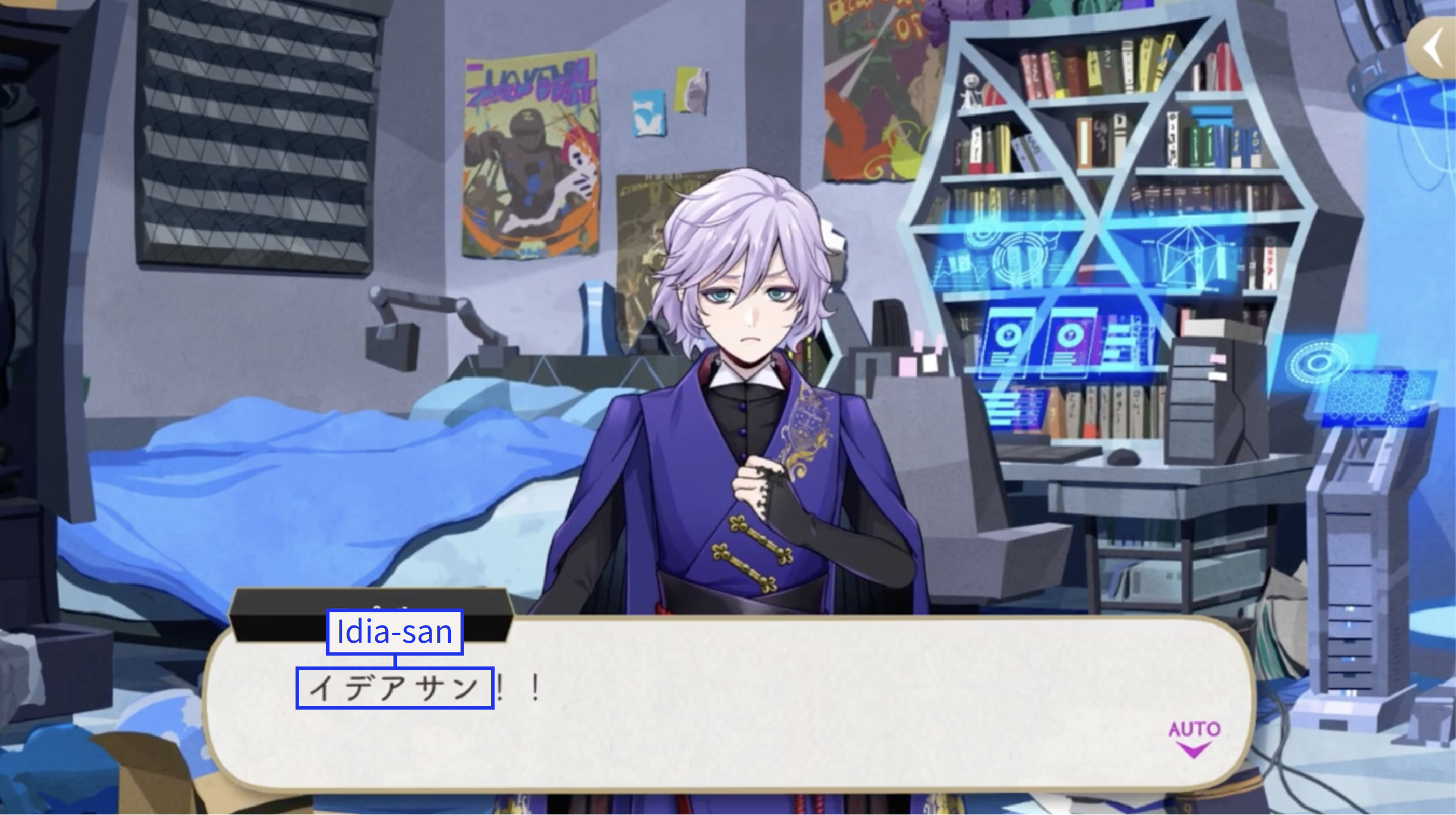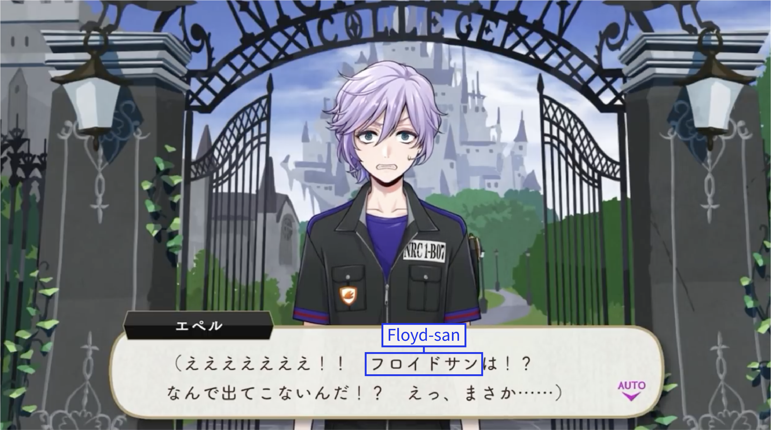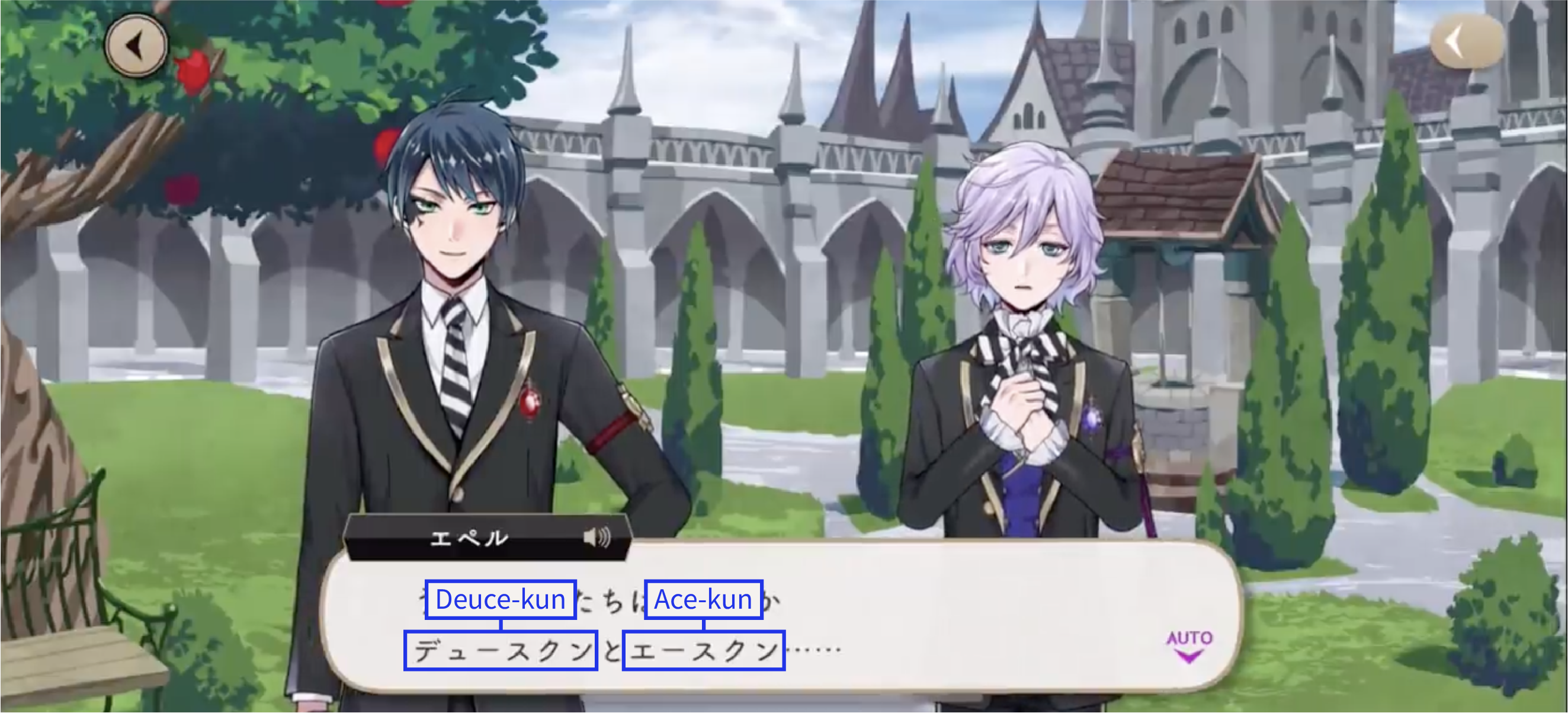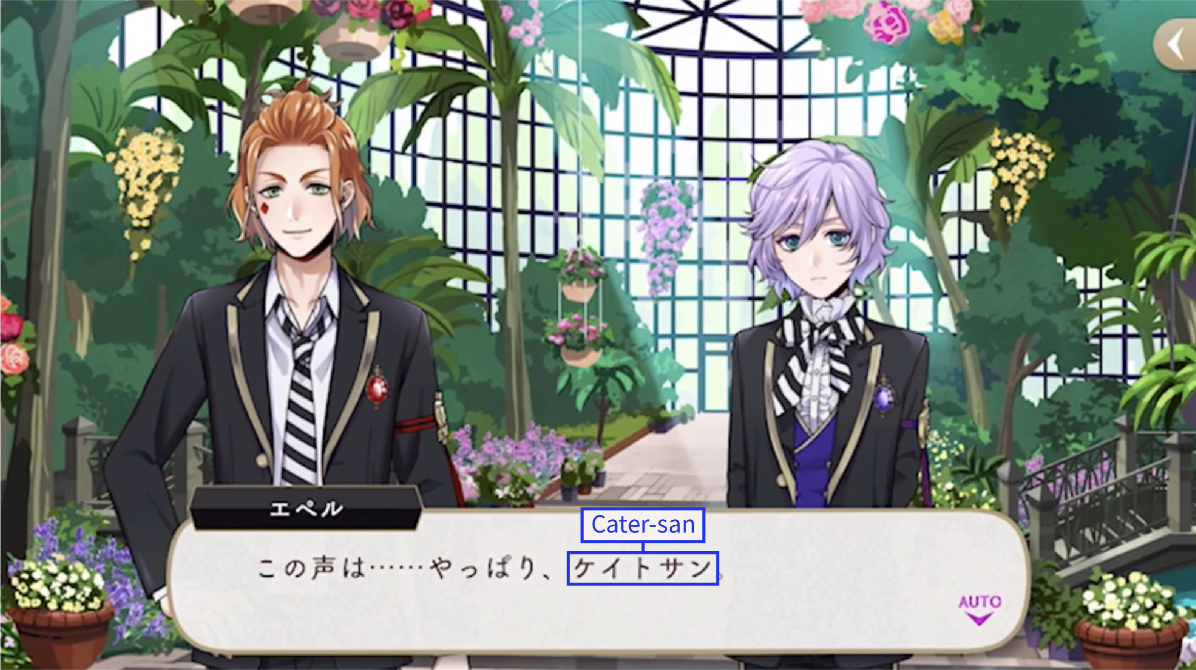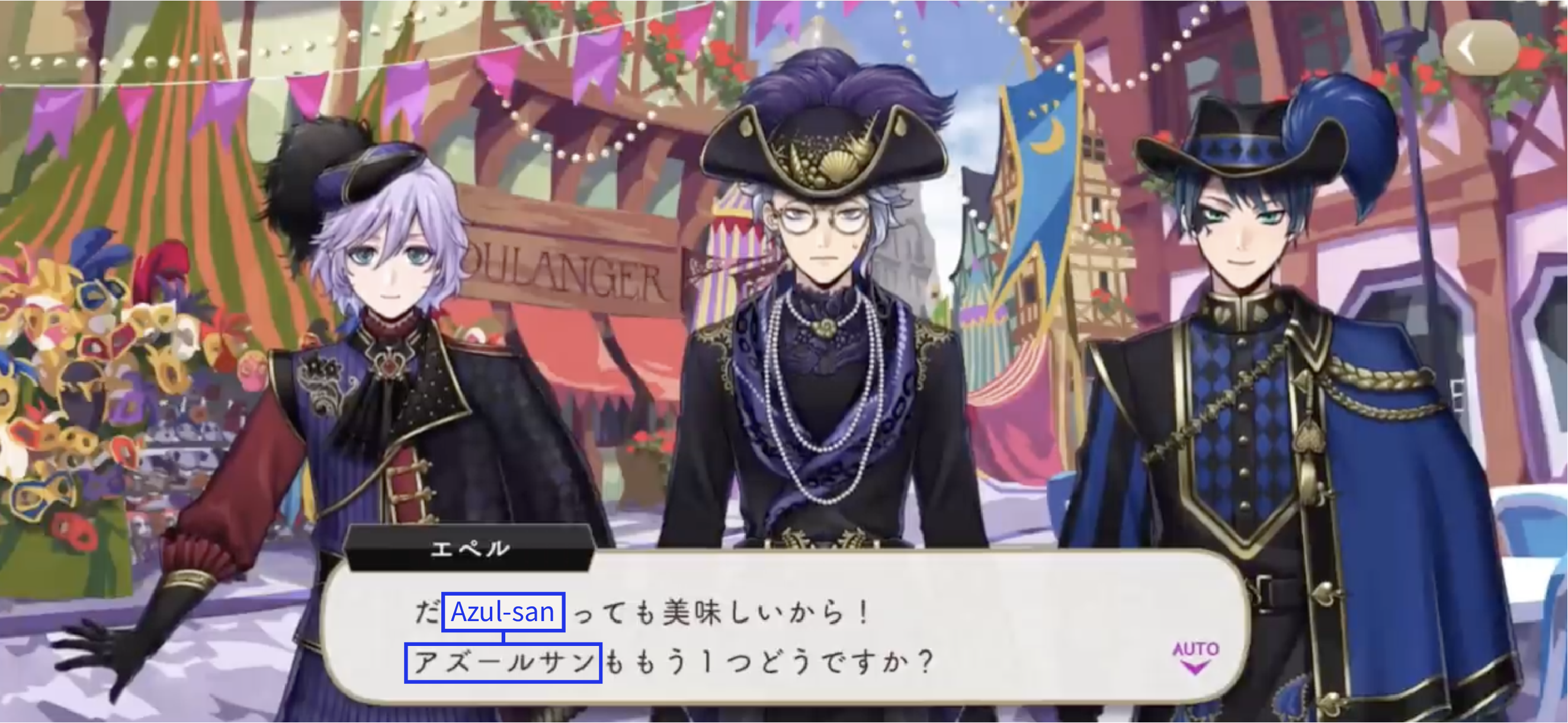 Bonus: Unlike other characters who use hiragana for honorifics, Epel uses katakana (the alphabet for foreign loan words) with his fellow students, but not with people from his village.