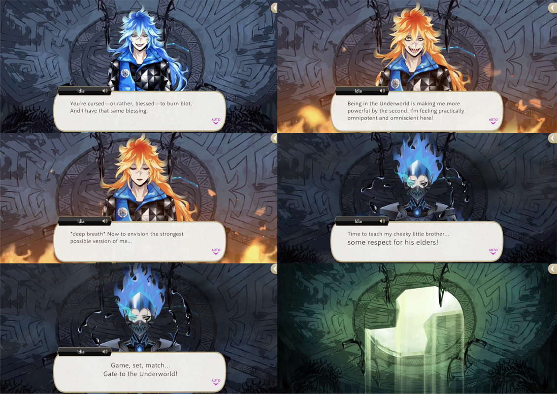 Phantom Ortho says that he cannot allow Idia to return to the world from whence he came, as ruler of the Underworld, and Idia reminds him that he, also, has the curse and/or blessing to burn blot, so the Underworld increases his power as well.
