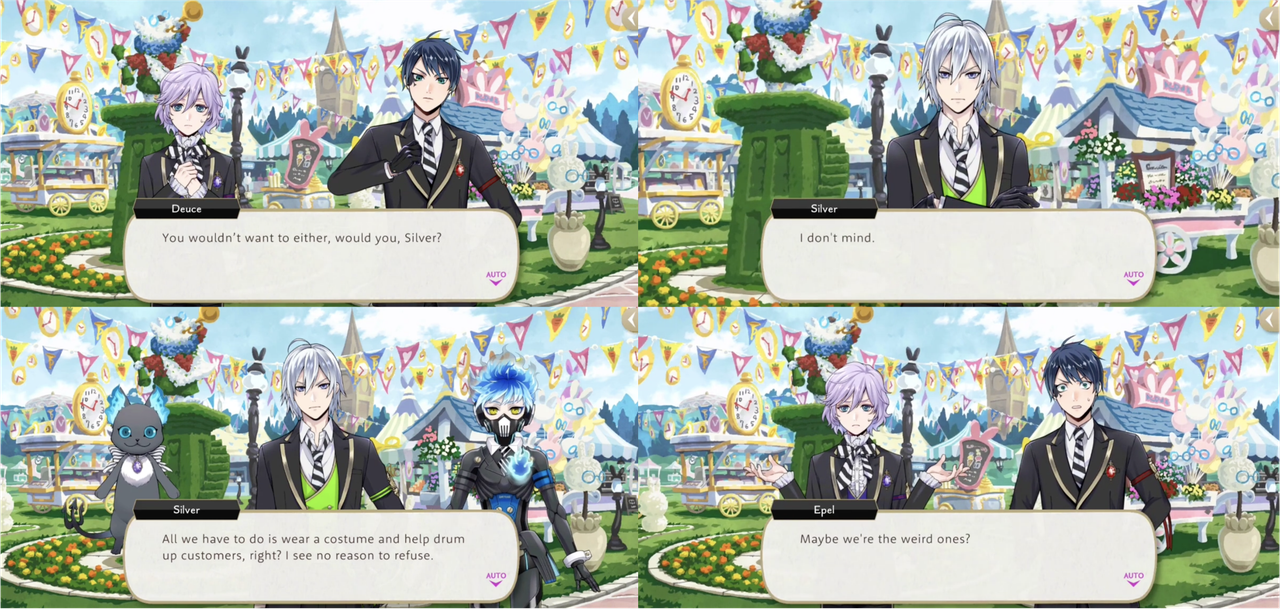 Other examples we have of Silver’s obliviousness are his willingness to dress up in a rabbit costume for the White Rabbit Fes event, saying that he sees no reason not to while Epel wonders if he and Deuce are actually the weird ones for not wanting to do so.