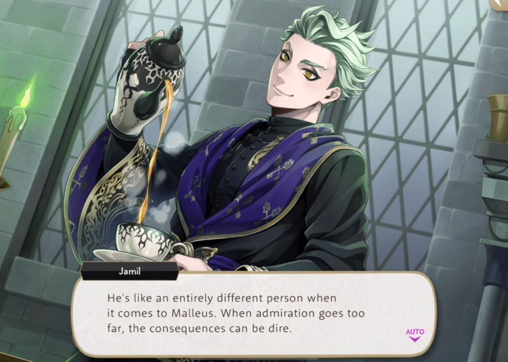 Lilia expresses frustration with Sebek’s inability to adapt to society, but canonically Sebek has only been outside of Briar Valley for 6 months, while he’s been emulating his grandfather for 16 years. Lilia says that Sebek has always been close to Baul and Jamil has a line of, “When admiration goes too far, the consequences can be dire.”