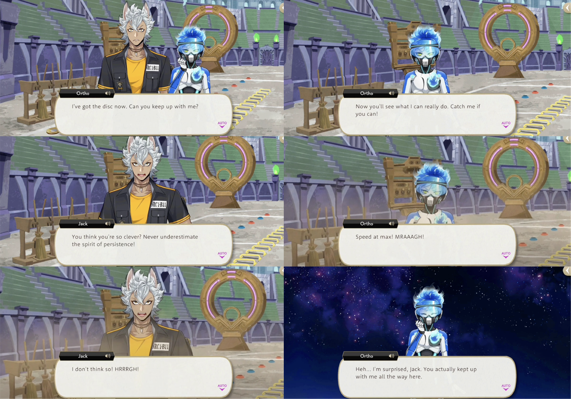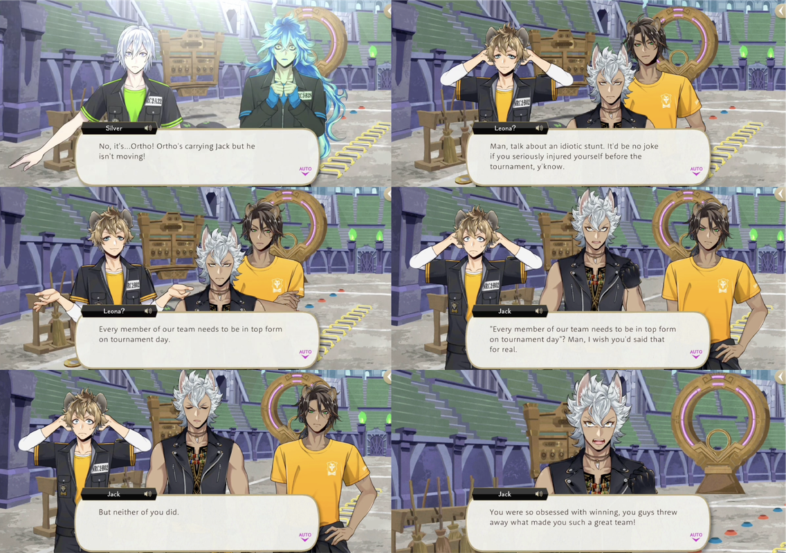 Jack falls out of the sky, saved by Ortho, and dream-Leona lectures him for not being more careful, saying, “Every member of our team needs to be in top form on tournament day.”