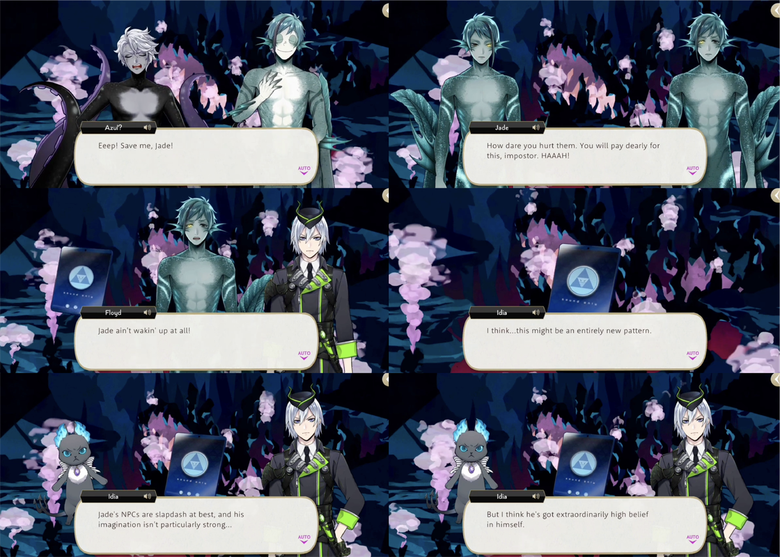 Floyd starts to fight the entire group but Jade still does not wake up. Idia says that Jade’s dream may be of a pattern that they have not seen before: his imagination isn’t particularly strong, but he believes very strongly in himself, to the point that he doesn’t care what other people say and cannot be swayed by the opinions of others.