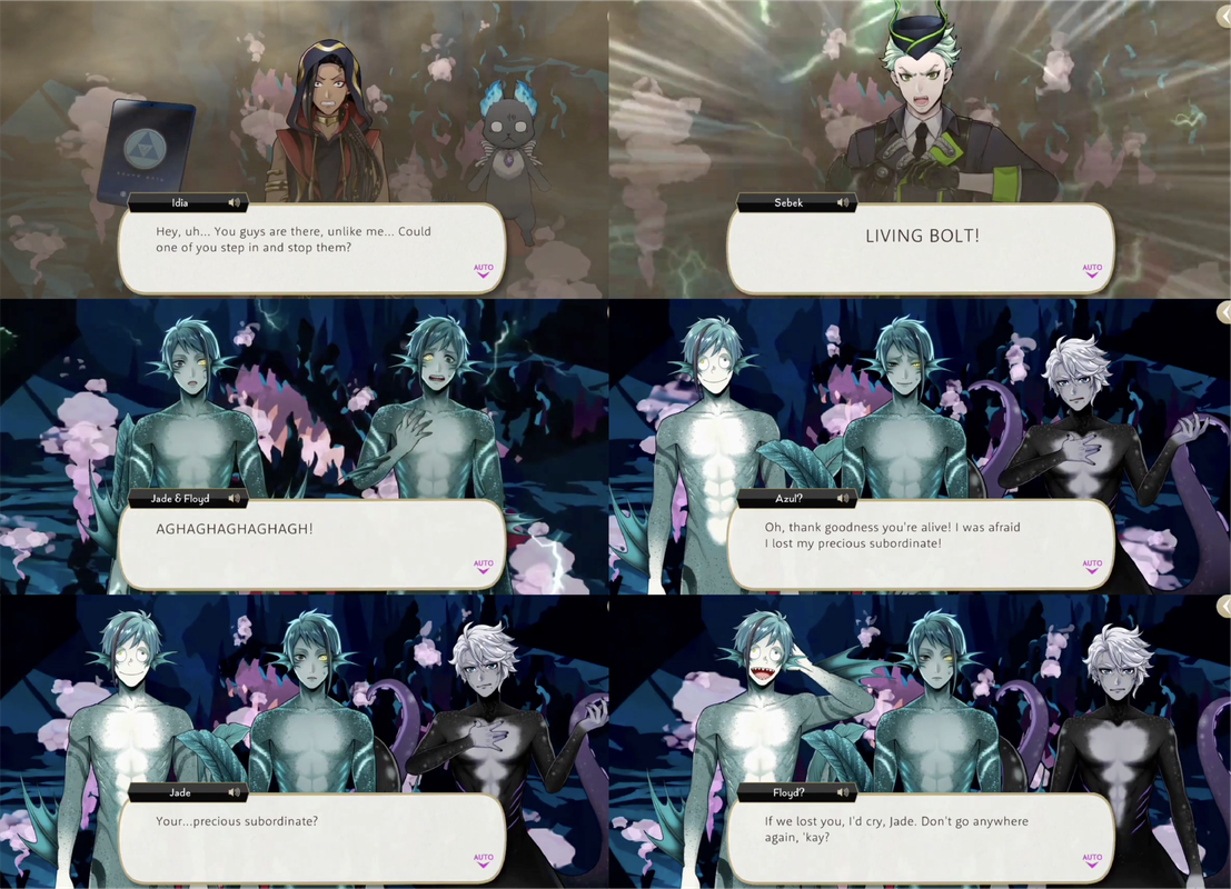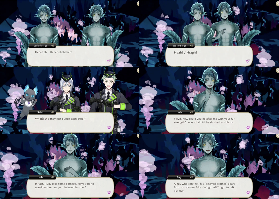 Floyd attacks Jade and the two get into a fight that even the dream versions of Azul and Jade cower from. Idia says that there is a real chance that they might lose both twins if they do not intervene, which Sebek does by invoking his unique magic.