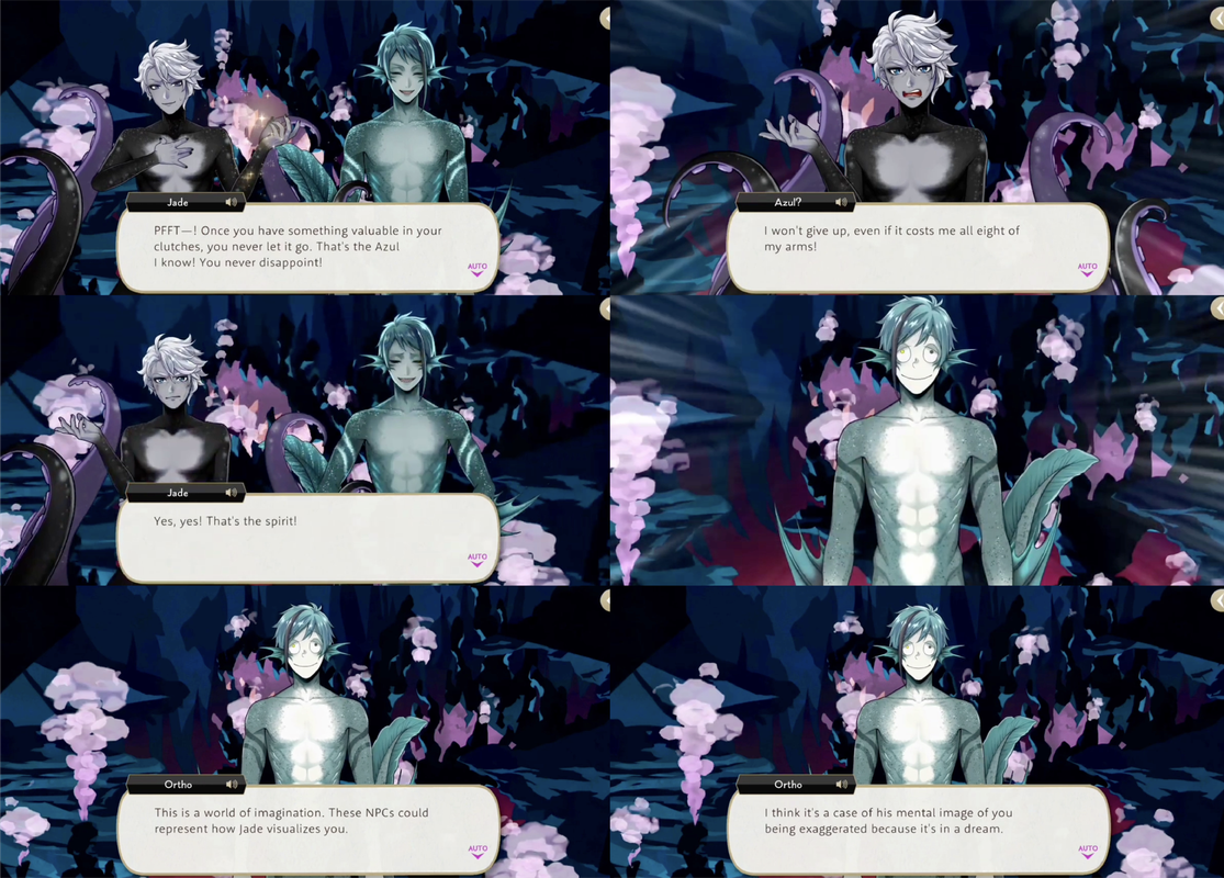 Dream-Azul assures Jade that real-Floyd is “more simple-minded and charming” and Jade agrees, saying that Azul and Floyd would be helpless without him.
