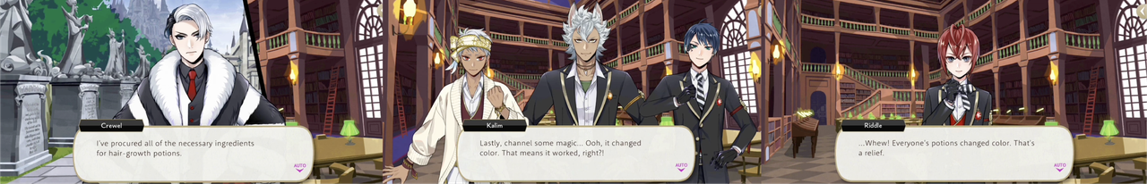 Along with Riddle, Jack and Deuce, Kalim channels magic into a hair-growth potion during the Lantern event.