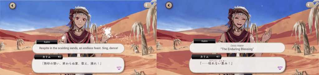 Kalim describes his unique magic Oasis Maker (hidden meaning: The Enduring Blessing) as the ability “to expend a little bit of magic power to produce large volumes of the finest water.”