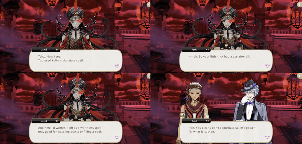 Jamil also seems to undervalue Kalim’s unique magic, calling it a “little trick” that he had written off “as a worthless spell only good for watering plants or filling a pool.” Azul says that Jamil does not appreciate his power for what it is.