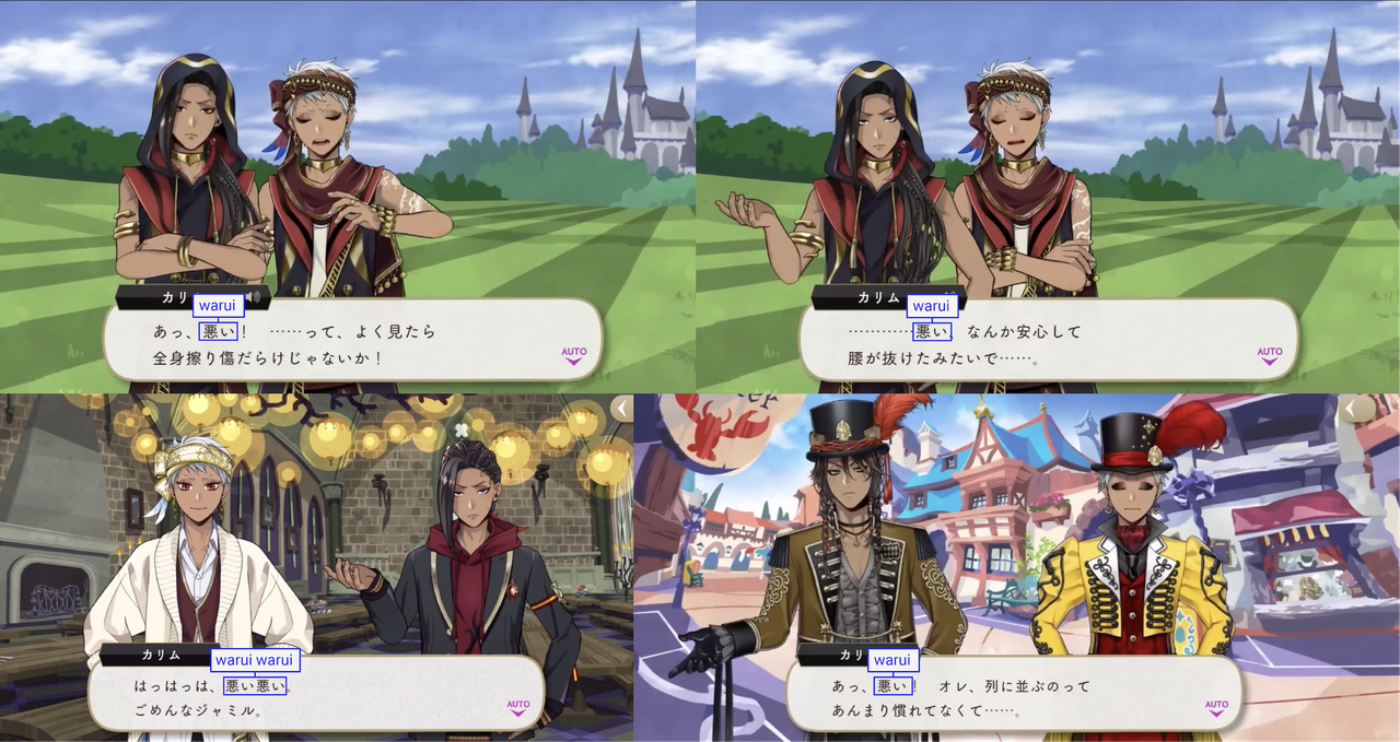 He will also often say 悪い (warui) and usually twice in a row, which literally means “bad” but in context is a casual/light/dismissive form of apology, similar to “my bad” or “sorry, sorry.”