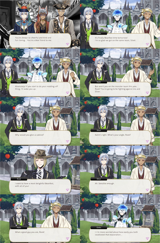 When Kalim and Silver are suspicious of Rook’s willingness to give them advice despite being on the opposite team, Rook says that he merely wants “to have a most delightful Beanfest, with all of you!” Ortho reacts with surprise to how easily Silver and Kalim accept this explanation.
