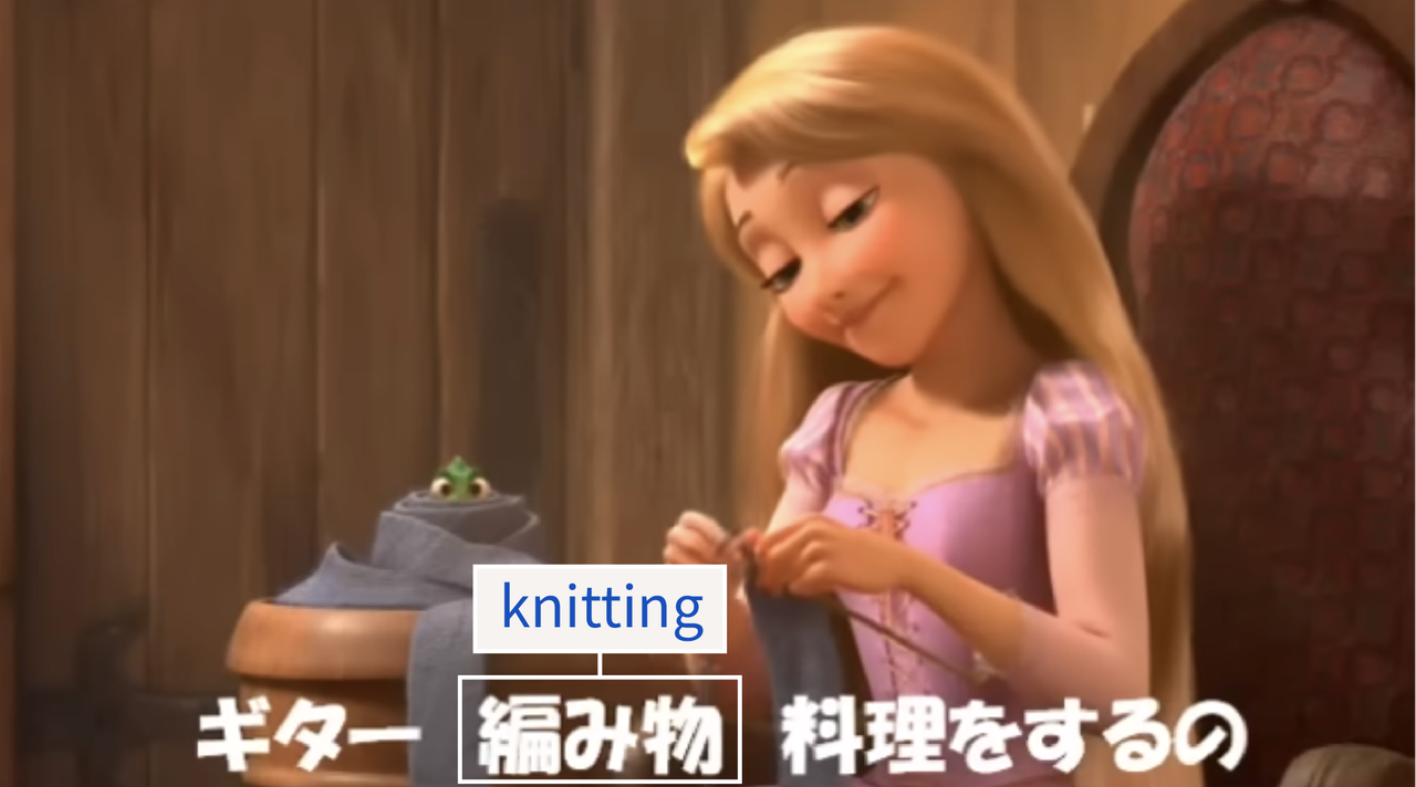 If you thought it odd that weaving was mentioned at first but then never again without any resolution, the actual word used was “knitting,” which was accurately translated later in the event to match both the Japanese-language adaptation of the Rapunzel movie and the original song.