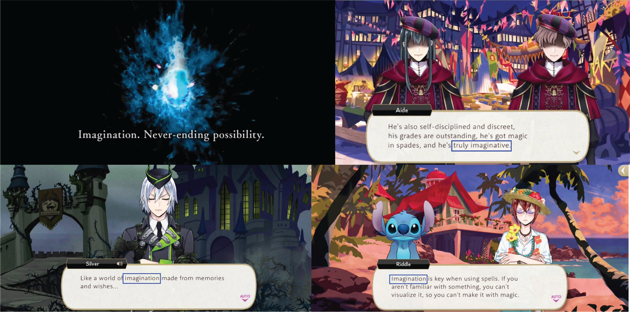 Imagination comes up often in Twst: in Book 7 the characters are trapped in dream worlds crafted by their own imaginations, but limited by the imagination of a person who cannot comprehend the concept of happiness beyond the absence of negative emotions.