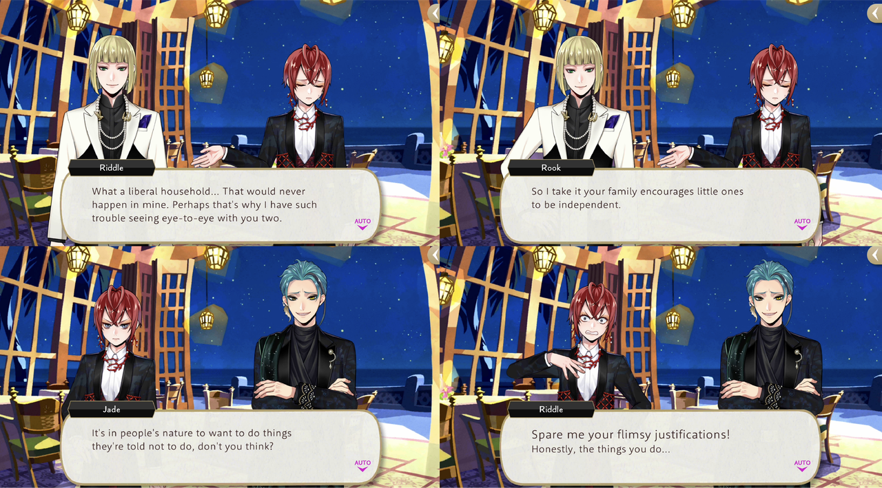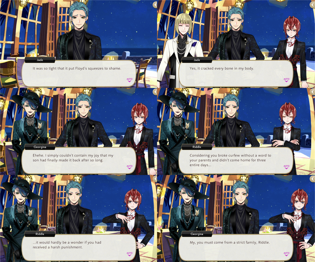 Riddle says, “it would hardly be a wonder if (Jade) had received a harsh punishment,” to which Georgina responds that Riddle must have come from a strict family. Jade says, “My family is rather laissez-faire. We don’t have set curfews. In fact, I’d been out for days before and never been scolded for it.”