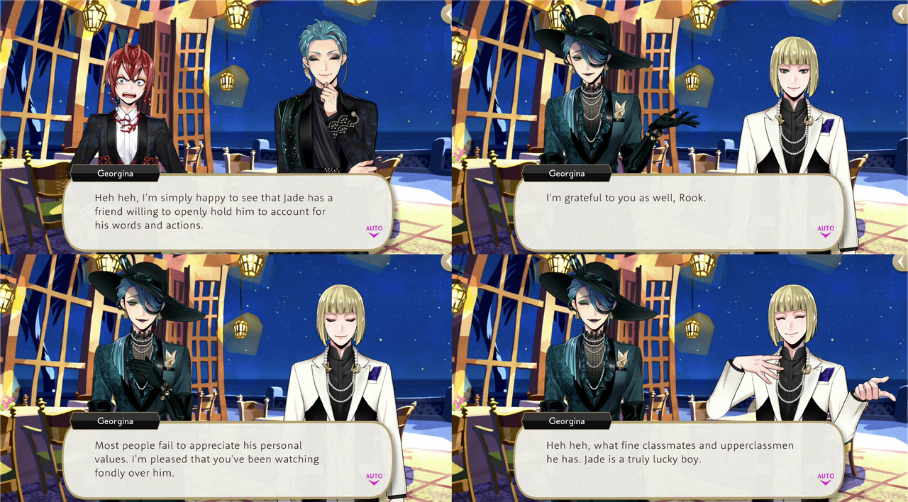 Georgina says, “I’m pleased that you’ve been watching fondly over him…what fine classmates and upperclassmen he has. Jade is a truly lucky boy.”