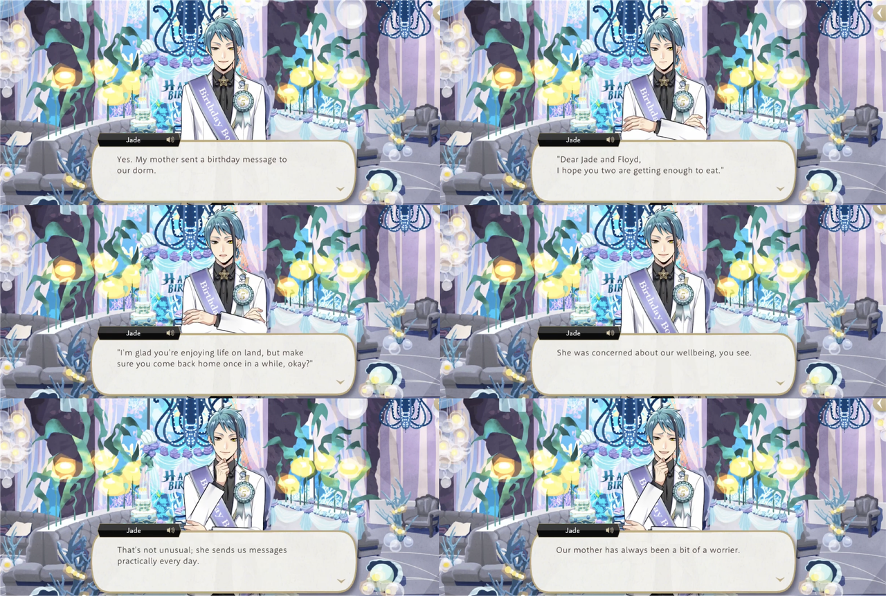 Floyd seems to be in contact with his mother, with Jade sharing that Floyd has told her about the pet names that he uses for the students of NRC. When Riddle reveals that he is less than pleased with his nickname of “Goldfish” Georgina asks Riddle to forgive her son’s “lack of manners.”