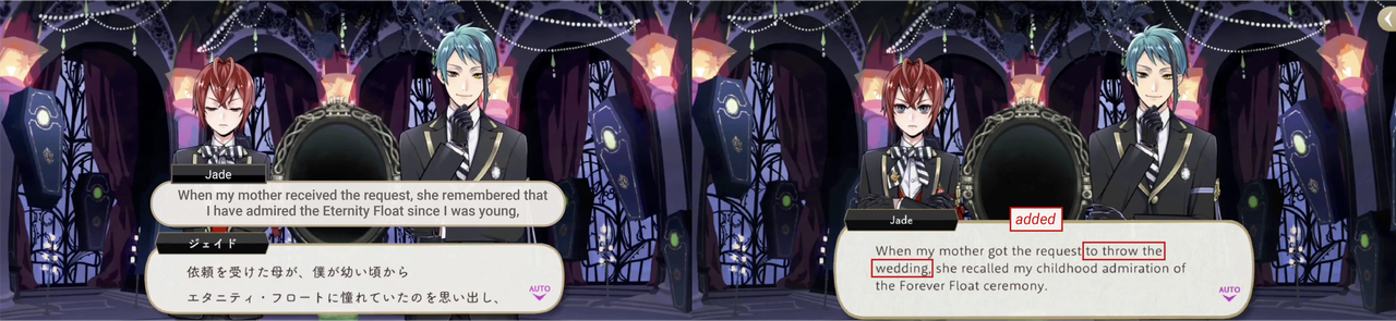 EN added “throw the wedding” to Jade’s dialogue, but the conversation begins and ends with his explanation of the trial before the wedding itself, as if that is the only thing that the couple needed Georgina’s help with.