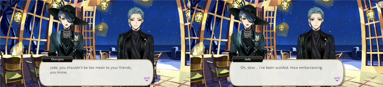 During dinner at the hotel Georgina cautions Jade about teasing the others, saying, “you shouldn’t be too mean to your friends, you know.” Jade responds, “Oh, dear… I’ve been scolded. How embarrassing.”
