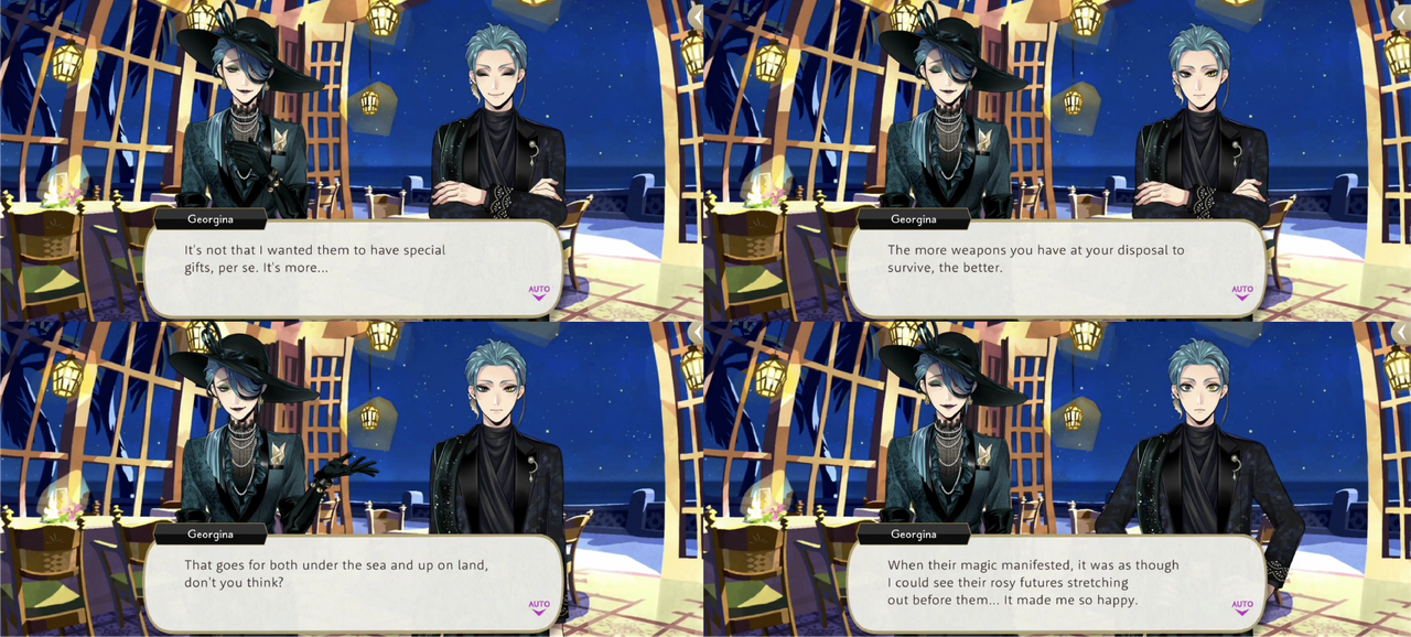 When Georgina later asks about Azul Jade says, “Azul said he didn’t wish to see you,” and Georgina responds, “That Azul, always holding himself back and standing on ceremony…”