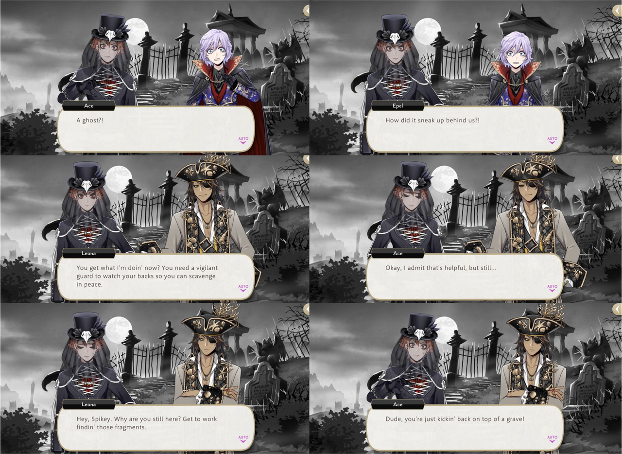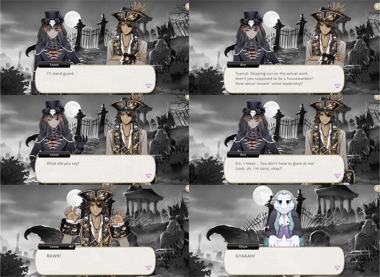 During Spectral Soiree Leona decides early on to leave Ace and Floyd to their own devices and Ace clings onto Leona, saying, “You can’t leave me!”