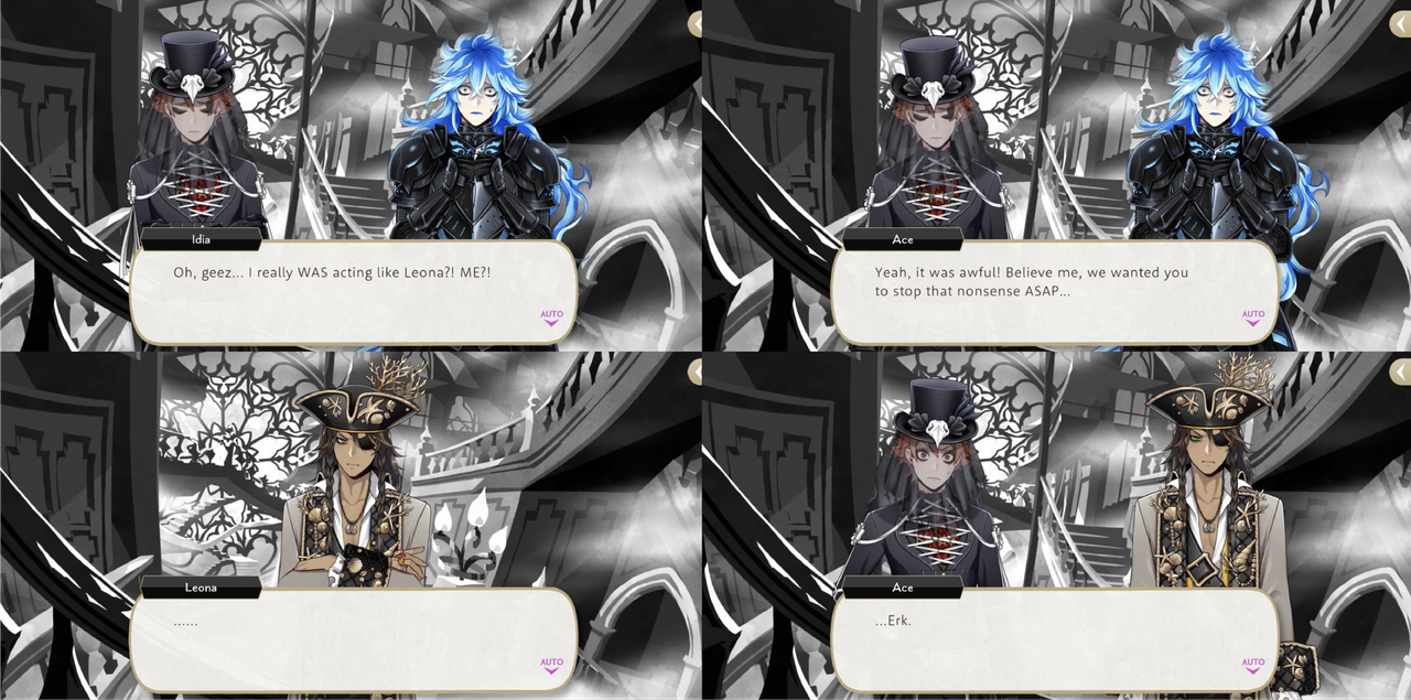 This new partnership is short-lived, as Ace soon reveals what he really thinks of Leona when they come across a possessed Idia. Idia asks, “I really WAS acting like Leona!?.” And Ace responds, “Yeah, it was awful! Believe me, we wanted you to stop that nonsense ASAP…”