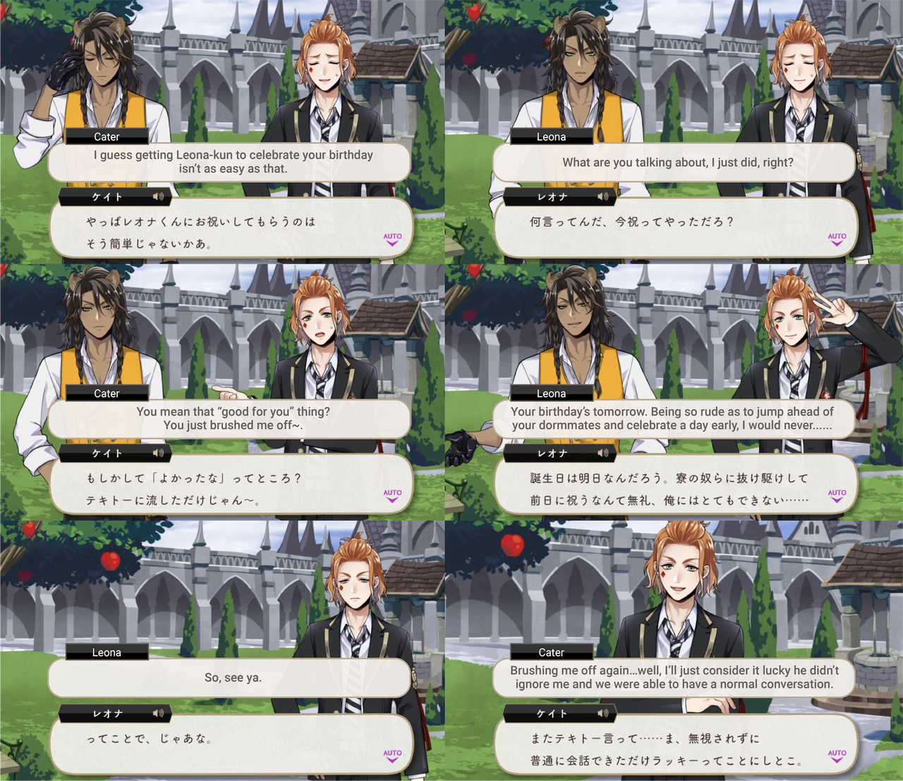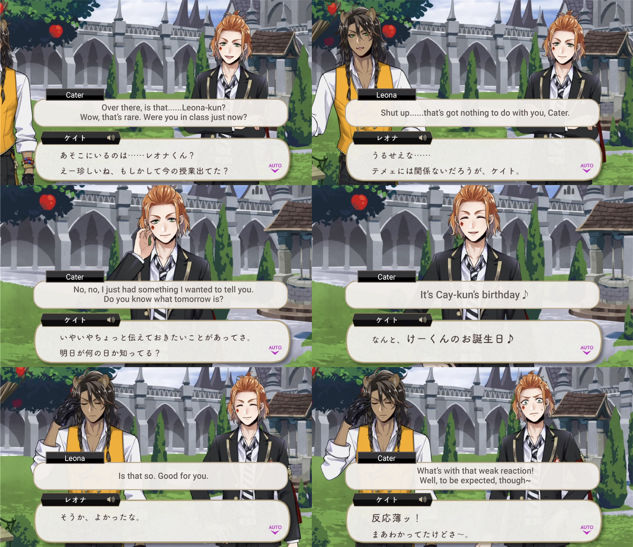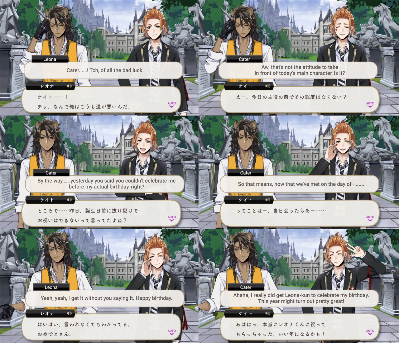 Leona and Cater overlap in Cater’s fifth birthday vignette where Cater fails to get Leona to wish him “Happy Birthday” a day in advance, saying that he will consider himself lucky for Leona being willing to have a conversation with him at all instead of just ignoring him.