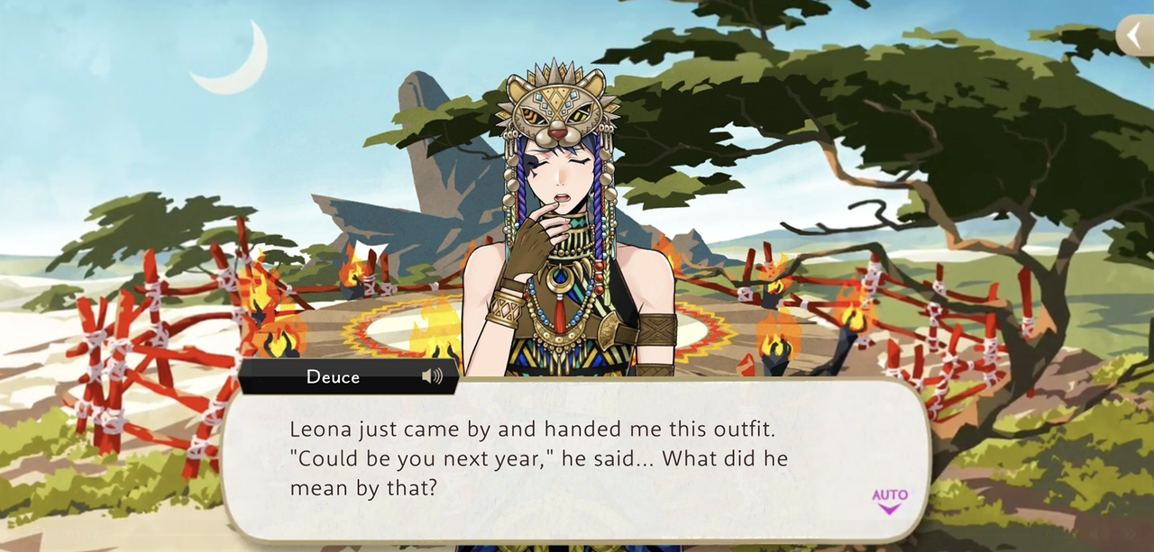 Deuce has a line about Leona giving him the Lion Garb outfit from the Cloudcalling tournament, saying that Leona told him that it could be him next year (Deuce: “What did he mean by that?”).