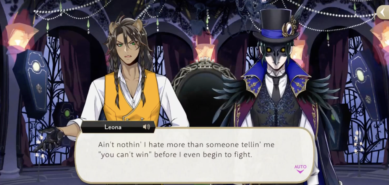 Cater asks for tips on how to get better at deciphering ancient incantations and Leona says he has always liked doing it, ever since he came across an inscription back in the palace where he grew up: “A really long string of words etched in an ancient tongue…First time I saw it, I had no idea what it meant, but I decided to try and figure it out just to pass the time.”