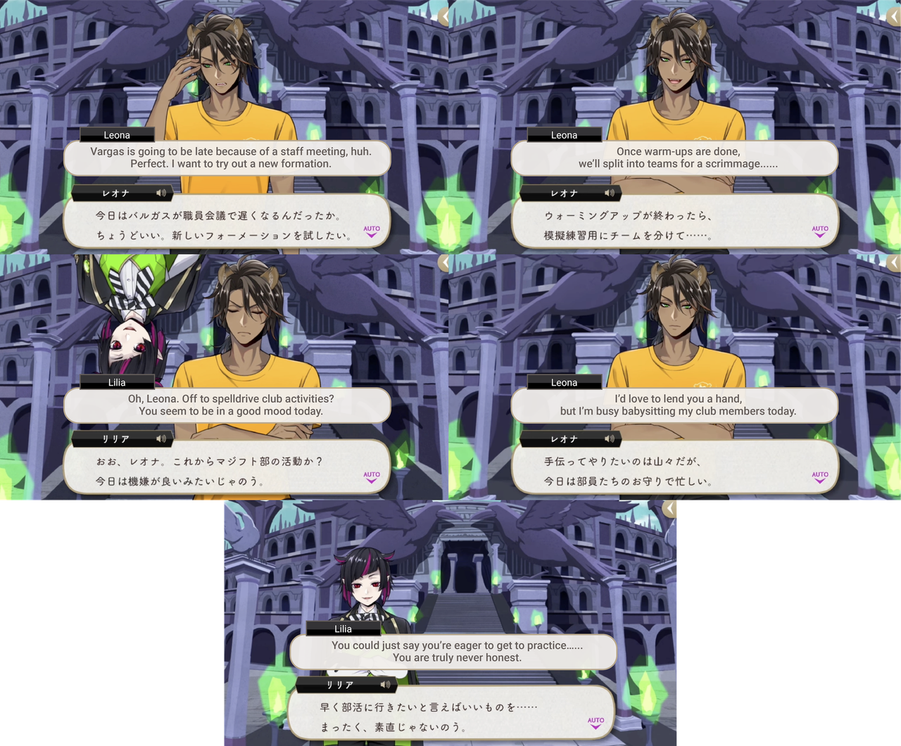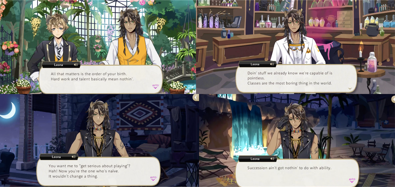 Being one of the more private characters on the cast this is possibly something about Leona that those who scold him for not putting in effort simply do not know about him, and he does not seem interested in correcting them, and might be actively hiding it: when thinking aloud about his plans for practice with the spelldrive team Lilia comments that he seems to be in a good mood and Leona says that he is on his way to go babysit his clubmates. Lilia observes, “You could just say you’re eager to get to practice……You are truly never honest.”
