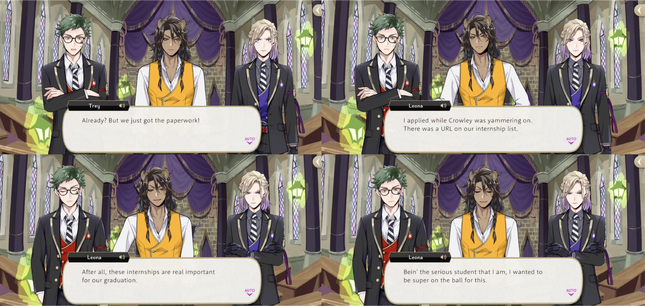 Vil scolds Leona in Book 7 for presumably failing to take his 4th-year internship seriously and Leona reveals he has already submitted his application, long before the rest of them.