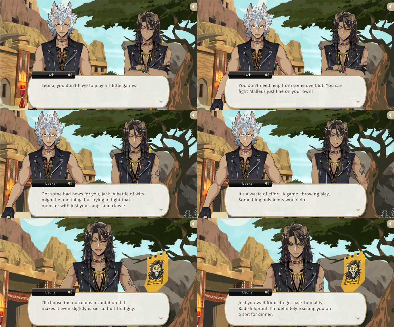 Leona’s apparent lack of effort is a significant part of the catalyst behind Jack’s decision to betray Savanaclaw in Book 2, and he gives up on the spelldrive tournament entirely when his plan to remove Malleus from the running fails.
