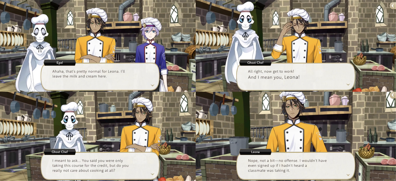 Leona signs up for the Master Chef course both for the class credit and because Epel signed up as well, saying, “Less of a hassle than decidin’ on another elective for myself.”
