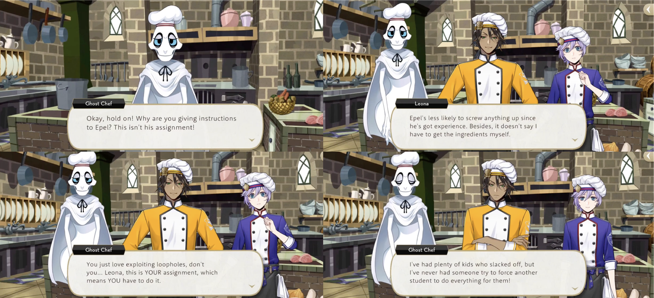 Later it is revealed that he may have had another motive: during his lesson he sends Epel to pick up his ingredients from the fridge rather than fetching them himself. The chef is shocked by Epel explains, “That’s pretty normal for Leona.”