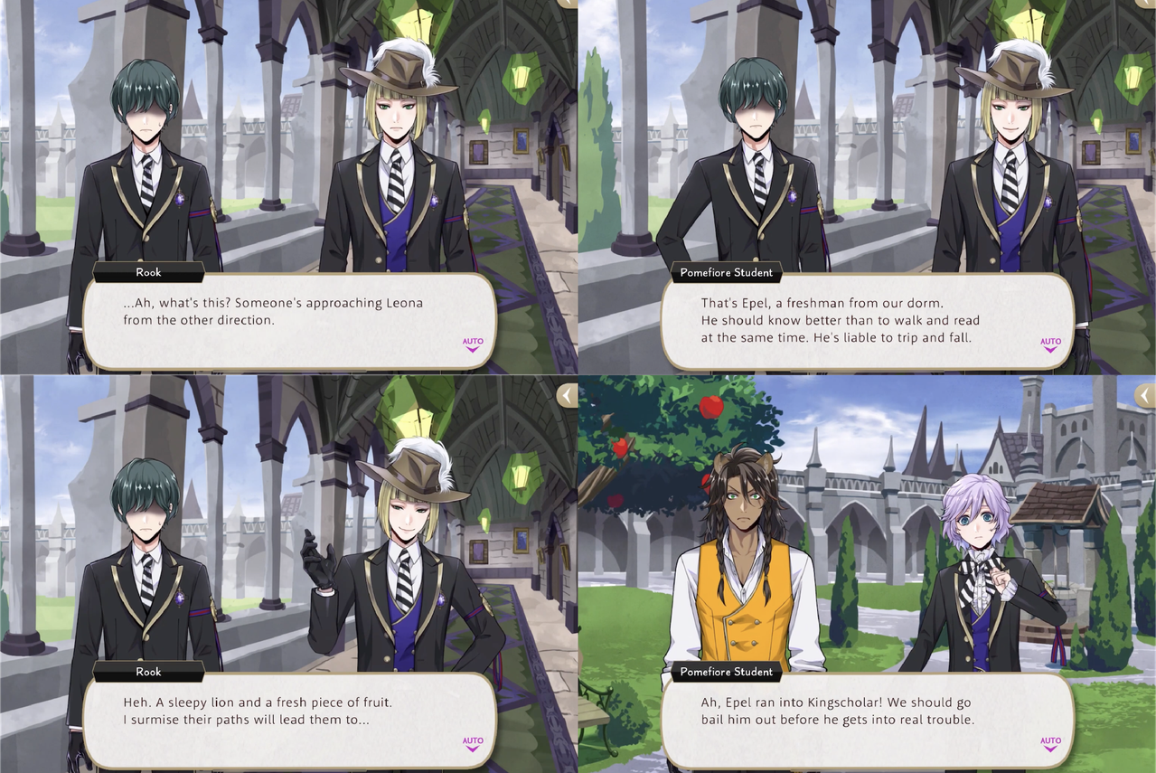 In a vignette he see Epel run physically into Leona due to reading a book as he walked. A Pomefiore student suggests to Rook that they go to “bail (Epel) out before he gets into real trouble,” but Rook points out that such will not be necessary: “This lion has better things to do than get angry at cubs…a king knows how to be magnanimous.”