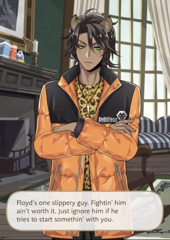 Leona also overlaps with Jade during the Halloween party, who asks Leona about some trouble that Floyd might have caused him earlier on.