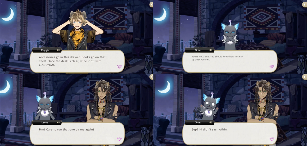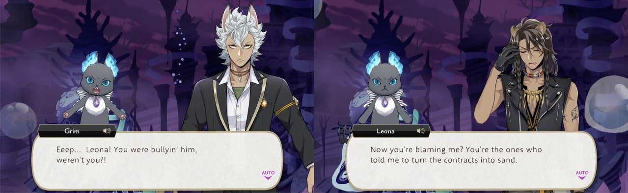 The two also bicker during Book 7 when Grim seems to attach himself onto Leona during a dream crossing, though Grim claims he was only trying to keep Leona’s necklace and hair from hitting him in the face.