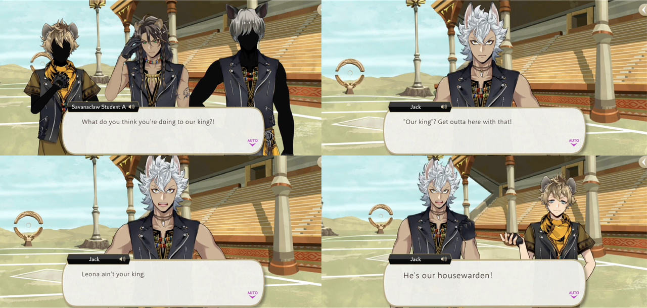 When Jack betrays Leona, Ruggie and the entire dorm in Book 2 Leona calls him a “filthy traitor,” which may have effected Jack more than he lets on until Book 7: Jack’s dream seems to be of a recreation of the interdorm spelldrive tournament where a dream version of Leona emphasizes the importance of skill, teamwork, and “hearts burning with drive!,” while Jack joins the chant of, “Long live the king!”