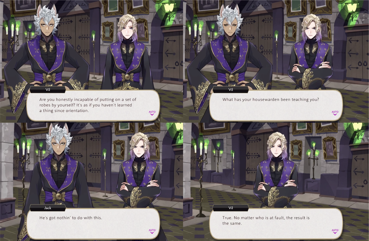 When Vil scolds Jack for not knowing how to wear his ceremonial robes properly he says, “What has your housewarden been teaching you?,” and Jack responds, “He’s got nothin’ to do with this.”