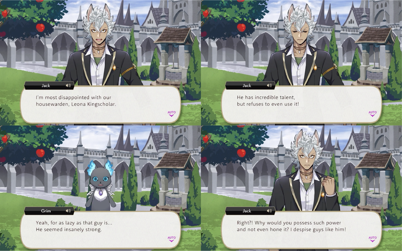 During Port Fest Jack tells Leona, “if the other dorms run their mouths, I’ll deal with ’em! I won’t make you look bad, Leona!,” but there are multiple instances of Jack himself disparaging Leona behind his back: he calls Leona lazy and irritable in a voice line, calls him a coward when speaking to Riddle, and says that Riddle “isn’t scared of puttin’ in some effort to get ahead. Again, unlike you-know-who.”
