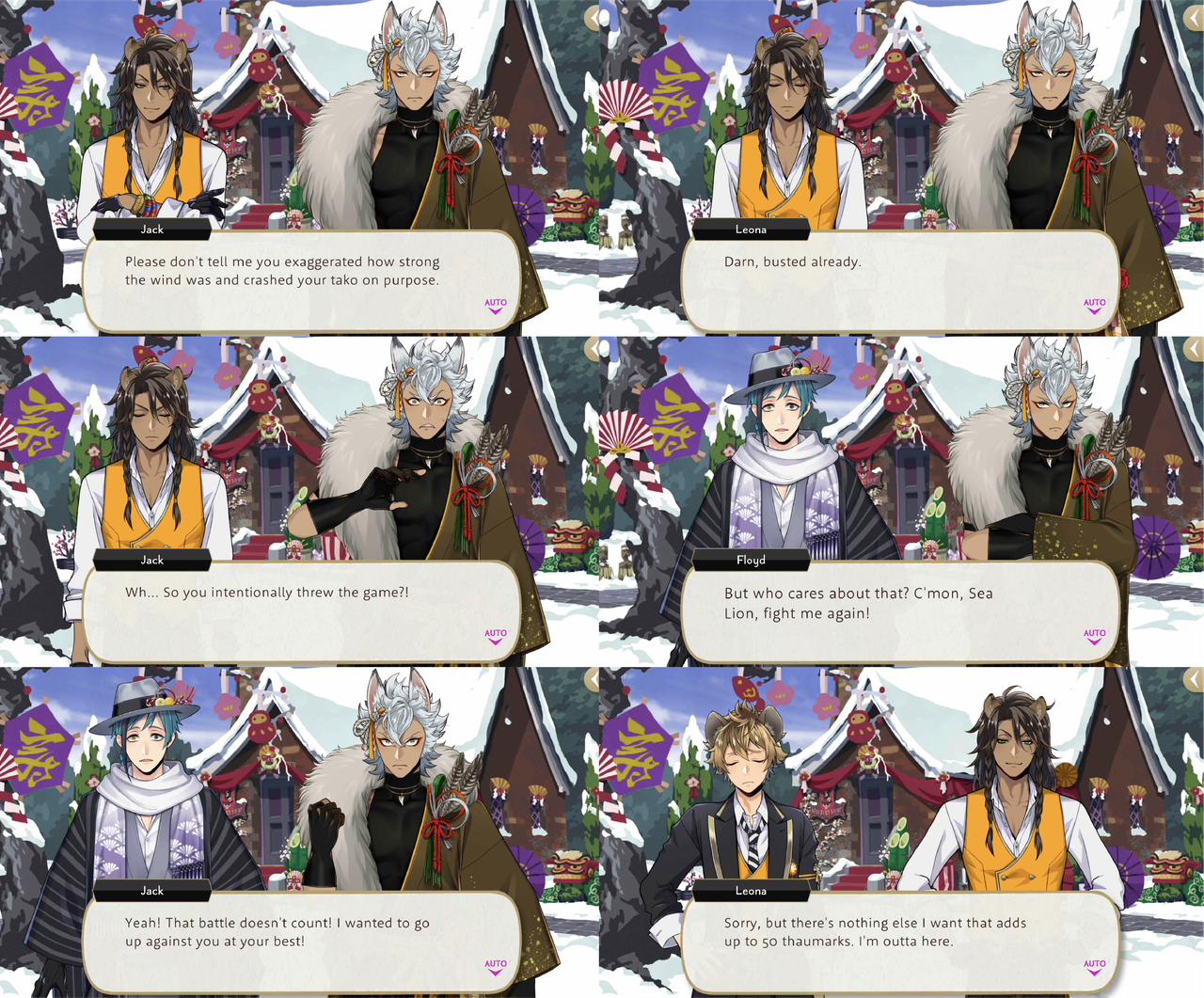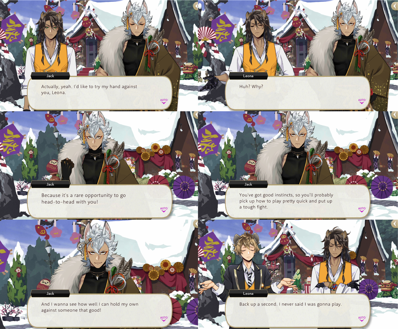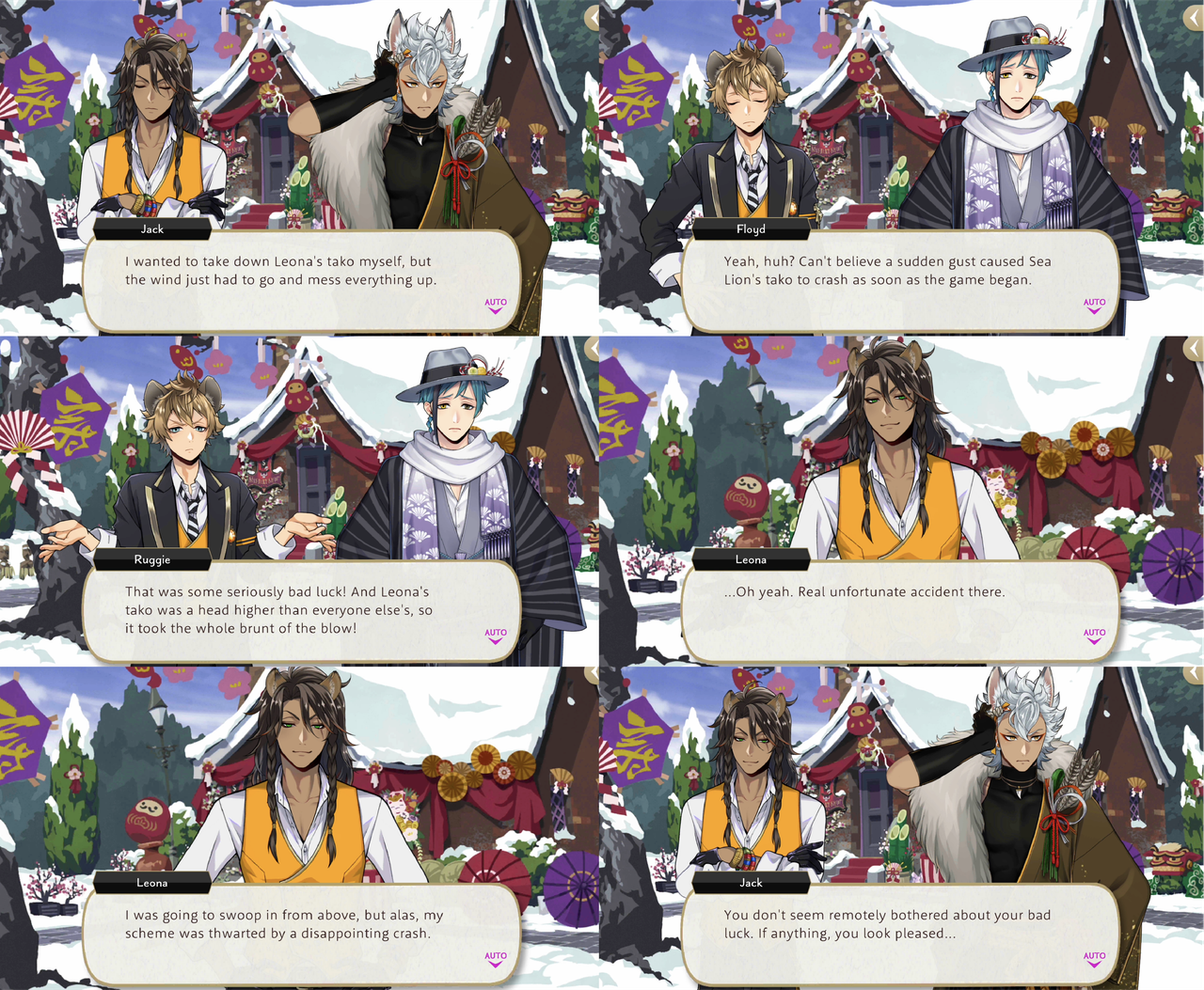 Leona also refuses Jack’s offer of a competition during another New Year: Jack insists on enlisting Leona in a tako battle and when Leona asks why, Jack responds, “Because it’s a rare opportunity to go head-to-head with you! You’ve got good instincts, so you’ll probably pick up how to play pretty quick and put up a tough fight. And I wanna see how well I can hold my own against someone that good!”