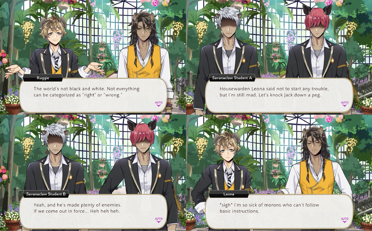 Later Leona overhears the same upperclassmen planning to “knock Jack down a peg,” and even Ruggie recommends that they let the other students “put a little fear into lack and teach him to respect the rest of his dorm.”