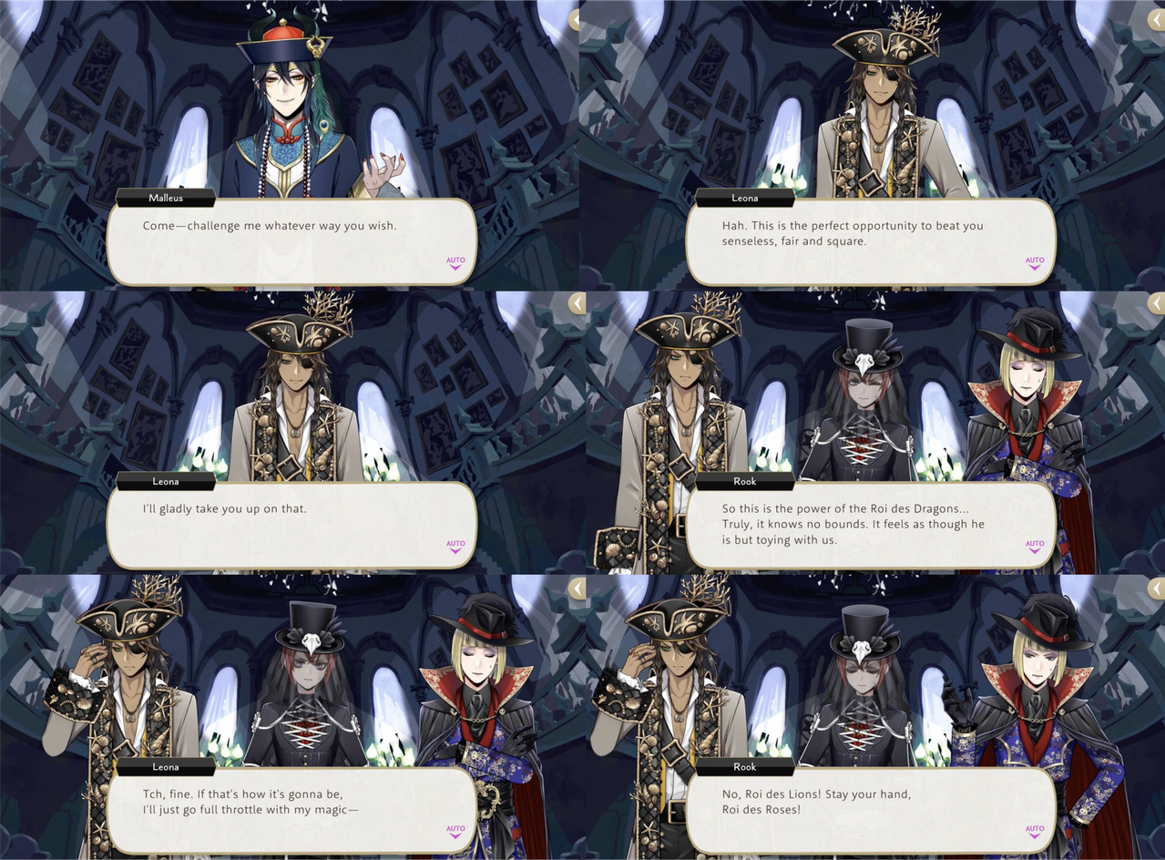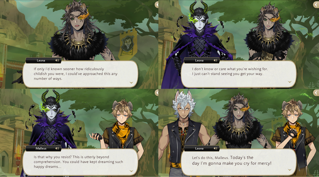 Leona approaches the presumably possessed Malleus during Spectral Soiree as “the perfect opportunity to beat (Malleus) senseless, fair and square,” but the group struggles in the fight against him. Leona decides to “go full throttle with (his) magic,” but Rook cautions against it.
