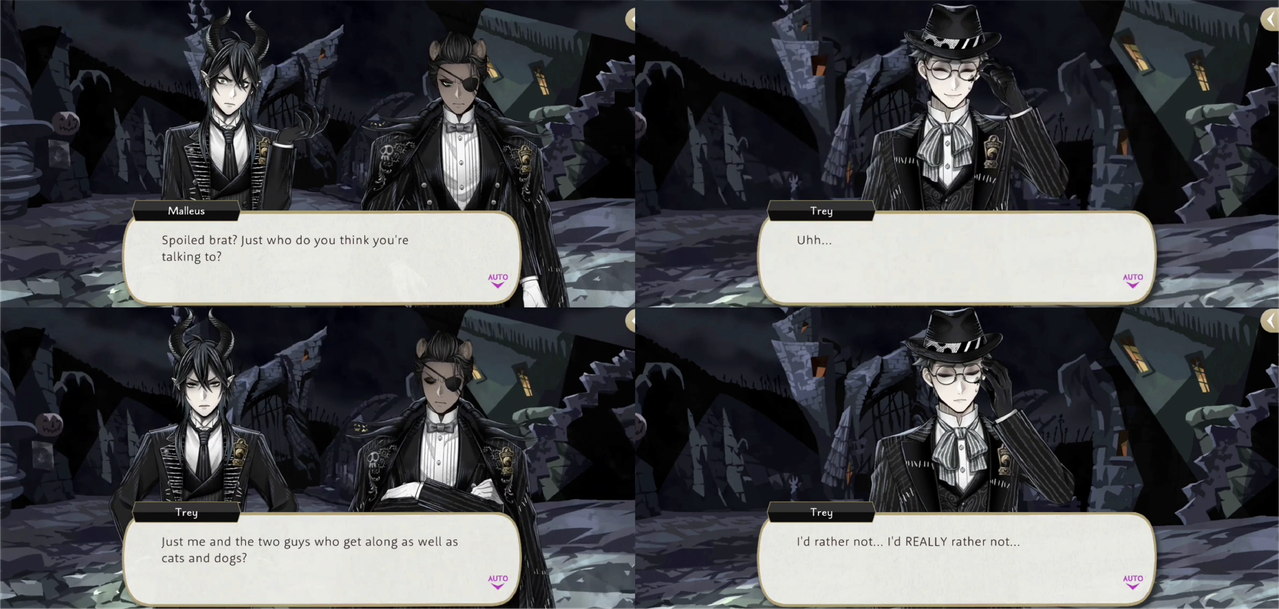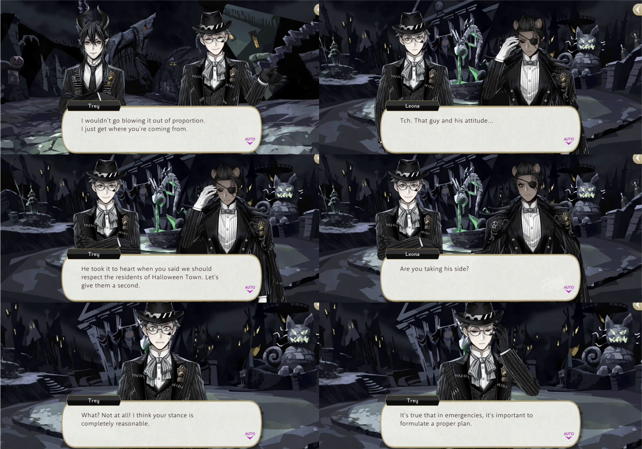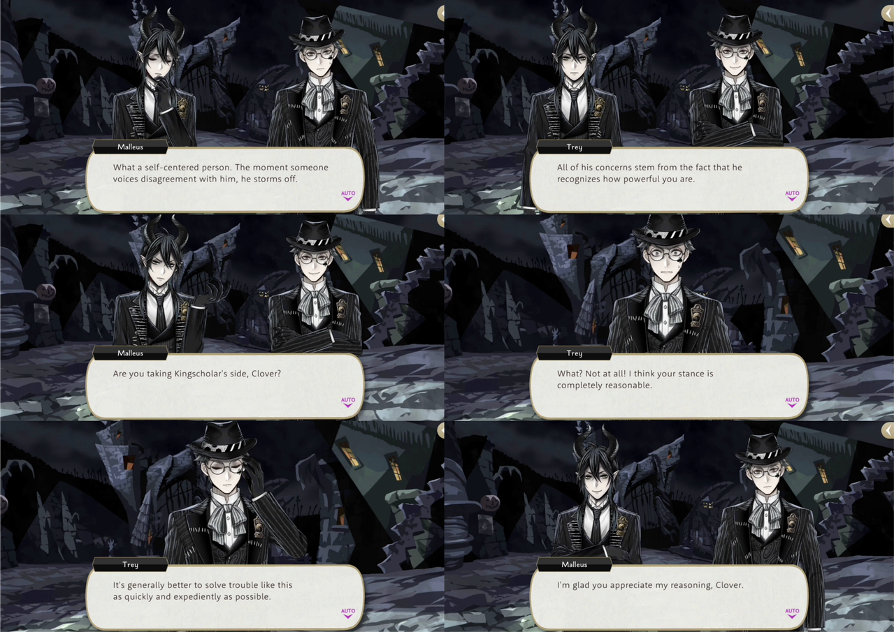 After Leona separates from the group Trey tells Malleus that his stance is “completely reasonable,” but when Trey is alone with Leona he says that he agrees with Leona.