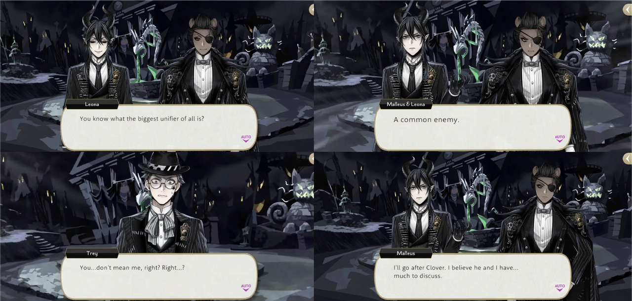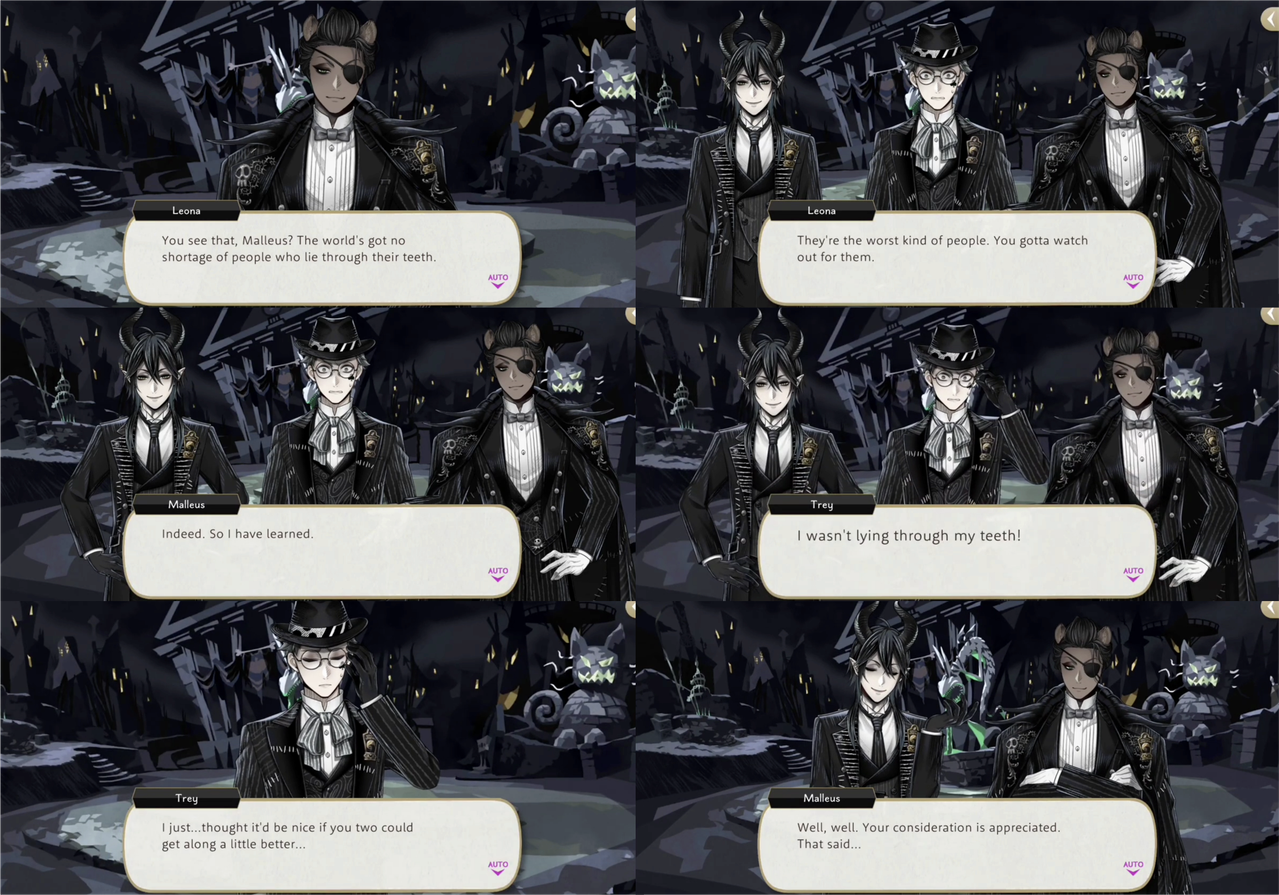 Trey says He had just thought it would be nice if they could get along a little better and Leona and Malleus both agree: the biggest unifier is a common enemy.
