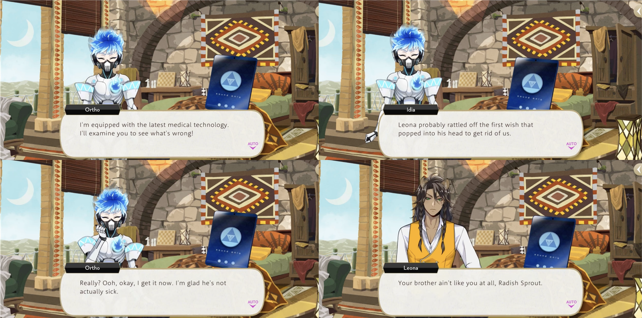 Ortho offers to examine him (“I’m equipped with the latest medical technology”) and when Idia says that Leona is trying to get rid of them Ortho responds, “I’m glad he’s not actually sick.”