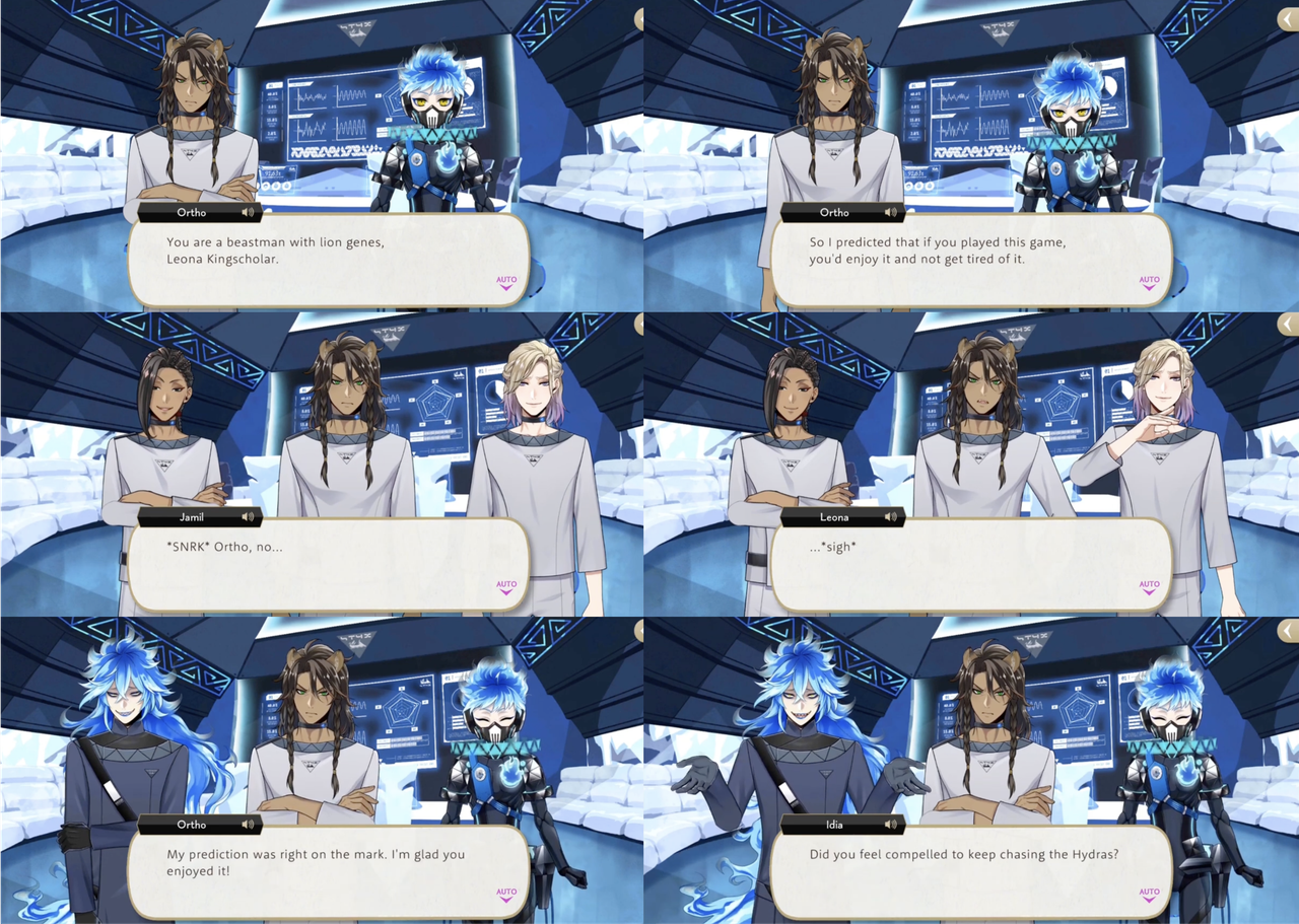 Ortho then explains that he wanted to test the game on Leona because he has seen videos of cats pawing at screens where the game was being played, and researcher tested it on lions, who reacted similarly: “You are a beastman with lion genes, Leona Kingscholar. So I predicted that if you played this game, you’d enjoy it and not get tired of it.”