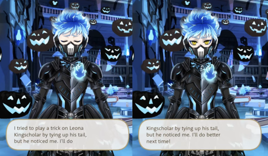 Ortho has a voice line of “I tried to play a trick on Leona Kingscholar by tying up his tail, but he noticed me. I’ll do better next time!,” and Leona is possibly more patient with Ortho than he is with his fellow third-year students: while at STYX Ortho has Leona play a video game that he believes will be suited to him, but refuses to tell him why until he has already obtained a high score.