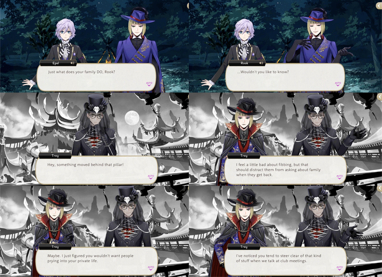 Rook has repeatedly been proven to value his privacy, refusing to tell Epel, Sebek, Deuce or Trey about his family, to the point that Trey lies about seeing a ghost during Spectral Soiree in order to keep Sebek from questioning Rook, as he has noticed that Rook tends to avoid talking about his private life in club meetings.