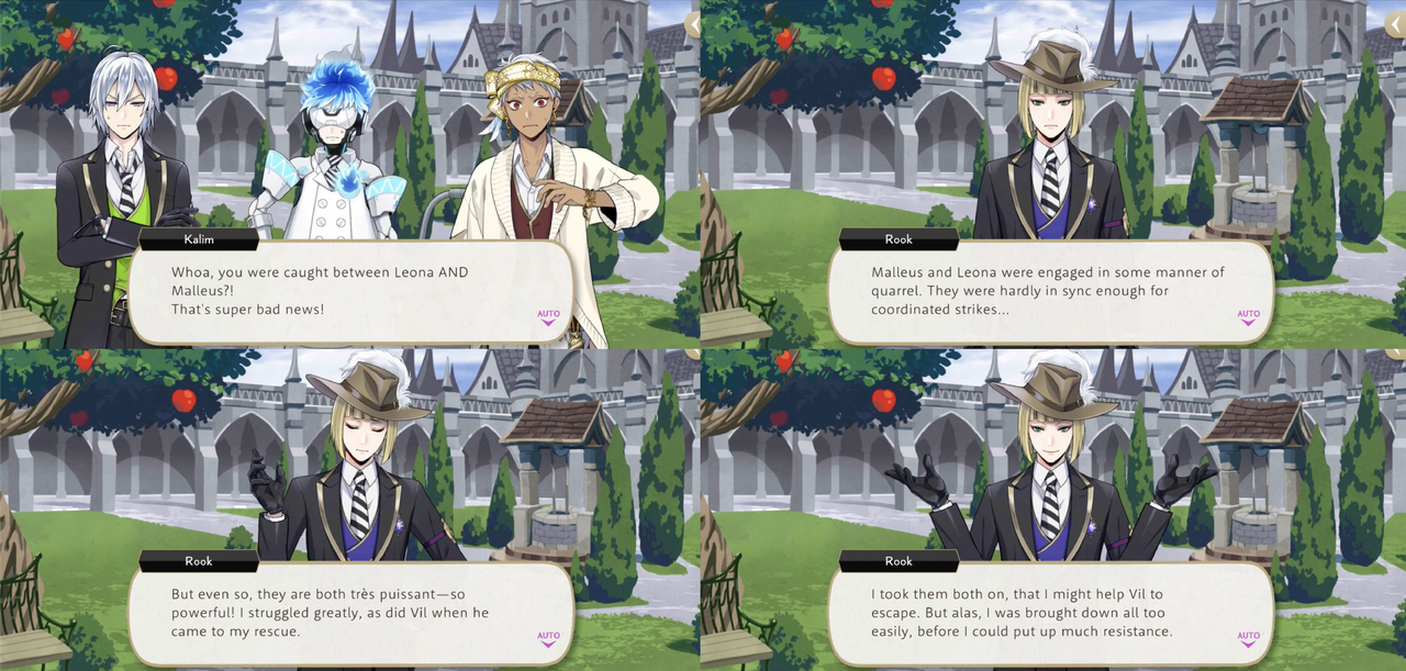 After Grim and Leona run physically into one another, spilling a potion that Rook had helped Epel create, Leona says he doesn’t see how they were able to learn anything “from the gibberish that jerk spouts.”
