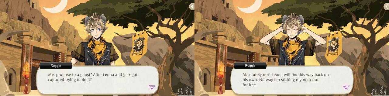 During the Phantom Bride event, however, Ruggie refuses to go to Leona or Jack’s aid when he is asked for help, saying, “Leona will find his way back on his own. No way l’m sticking my neck out for free.”